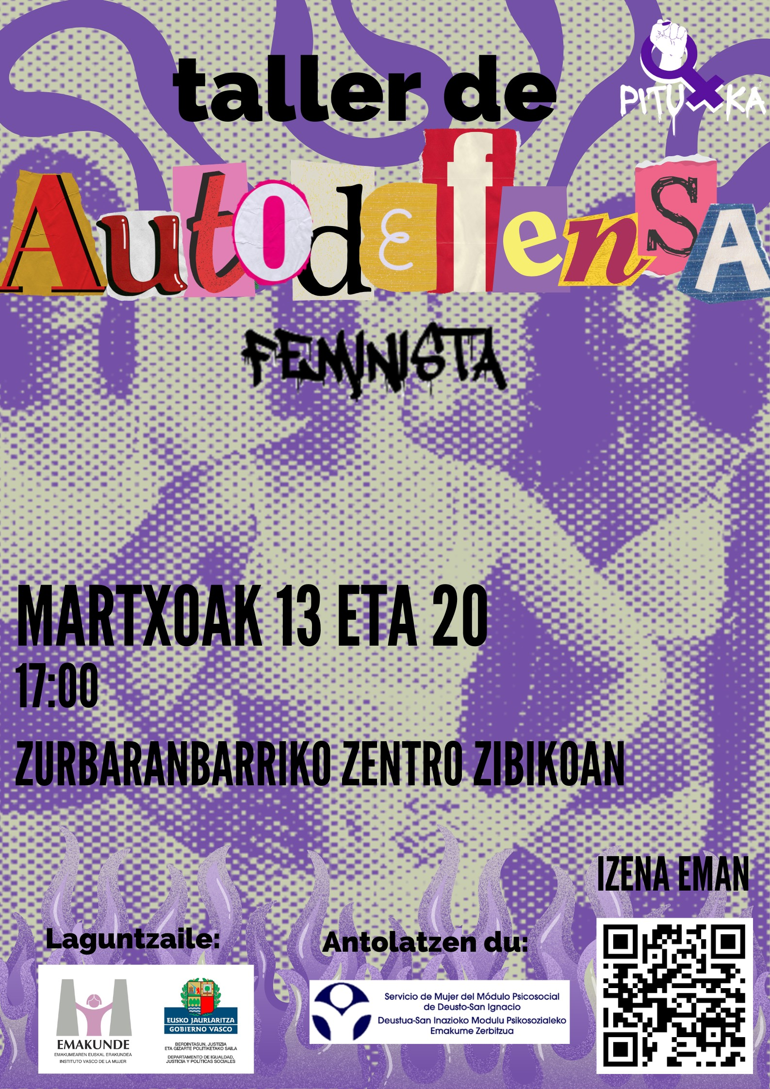 Esta vez lo hemos organizado junto con el grupo feminista de Zurbaranbarri Pituxka, ellas han diseñado este cartel donde podéis encontrar toda la información.